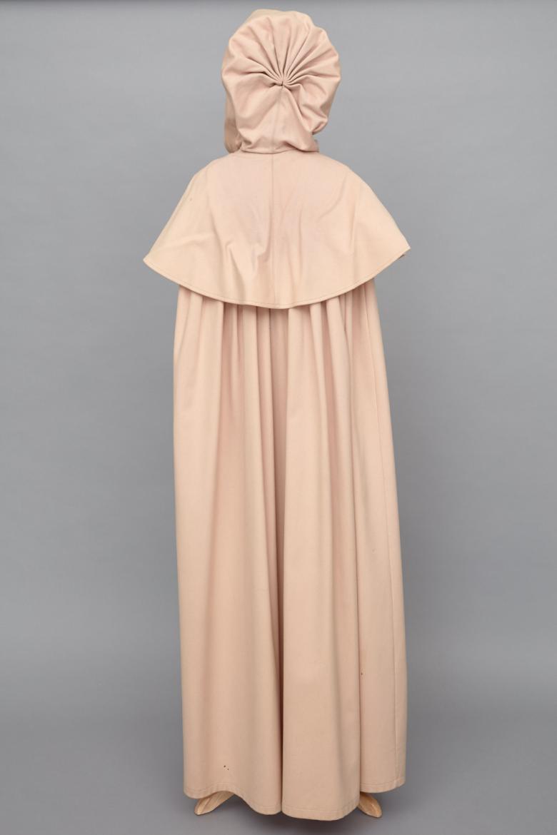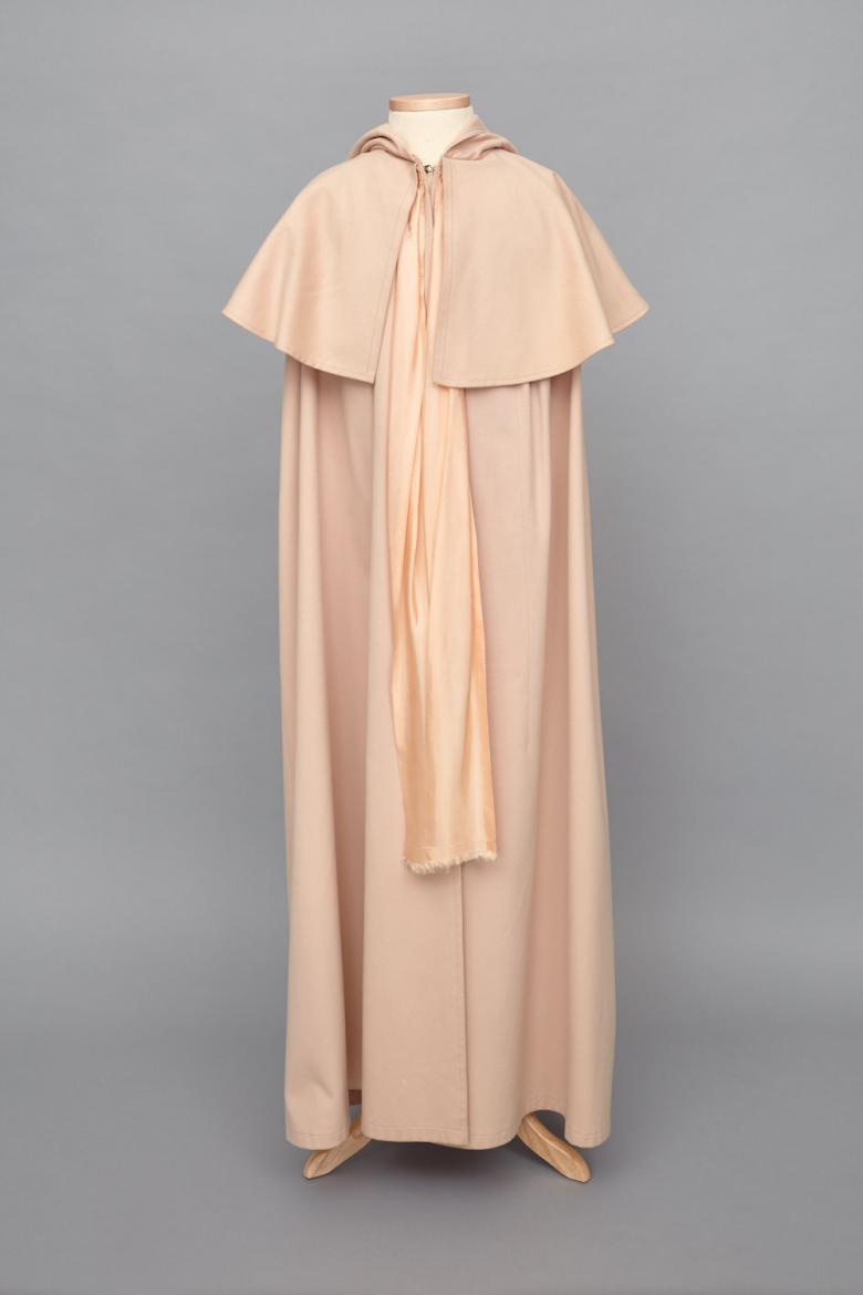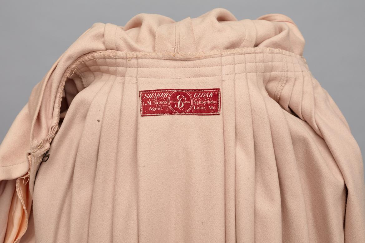 Peach wool flannel cloak bearing label of Sabbathday Lake, ME