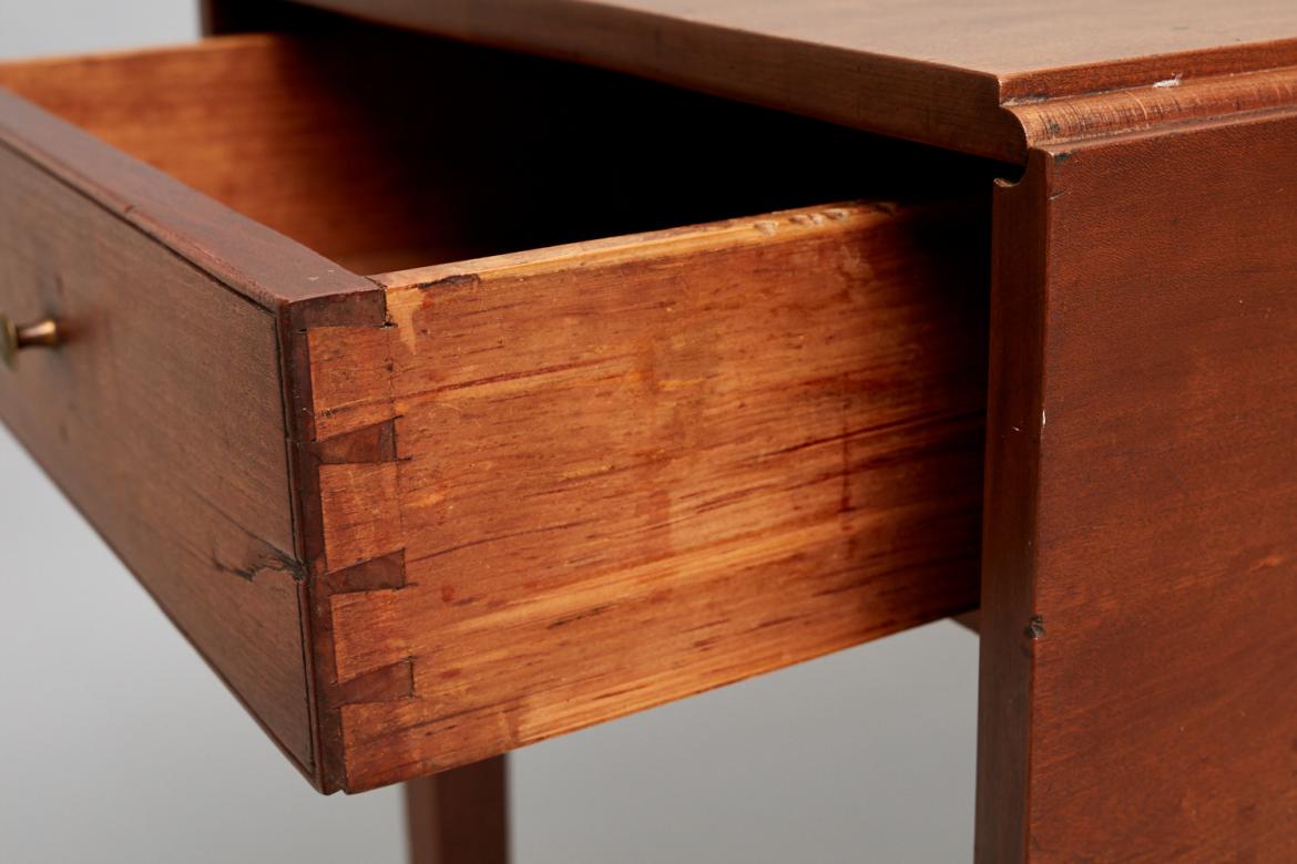 One drawer, drop-leaf table stained brown, Mount Lebanon, NY